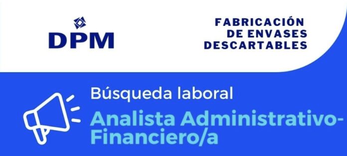 La empresa DPM, dedicada a la fabricación de envases descartables, anunció la apertura de una búsqueda laboral para sumar a su plantel un Analista Administrativo-Financiero/a, en un puesto clave dentro de su área administrativa.