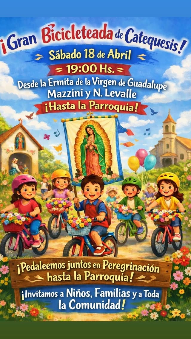 Este sábado 18 de abril desde las 19 hs, se realizará la bicicleteada organizada por el grupo de catequesis de la Parroquia San Agustín y Santa Mónica.