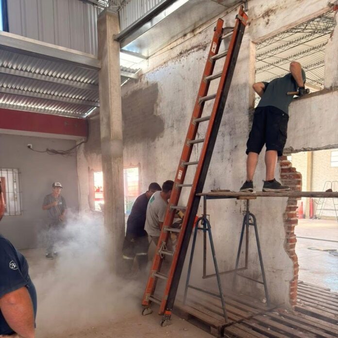 Este fin de semana, integrantes del Cuerpo Activo de los Bomberos Voluntarios de Carlos Pellegrini llevaron adelante un importante avance en el marco de las obras de mejora que se proyectan para este año en el cuartel.