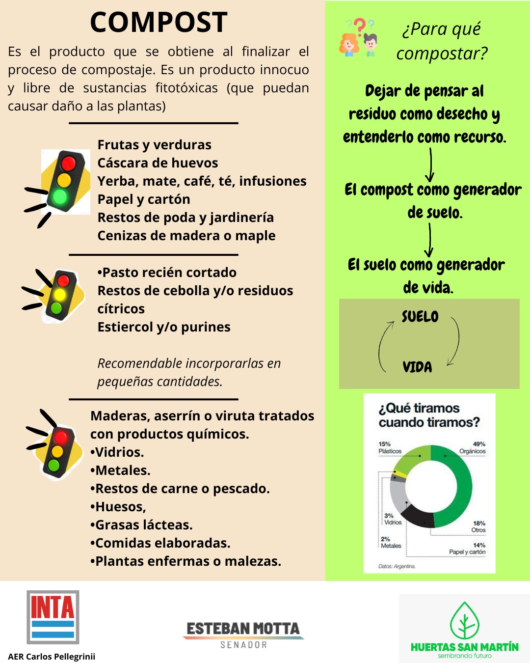 Dentro del programa «Huertas San Martín», promovido por el Senador Esteban Motta e INTA Carlos Pellegrini comparten una guía práctica sobre el compostaje, un proceso natural que transforma la materia orgánica en un producto inocuo y vital para nuestras plantas.