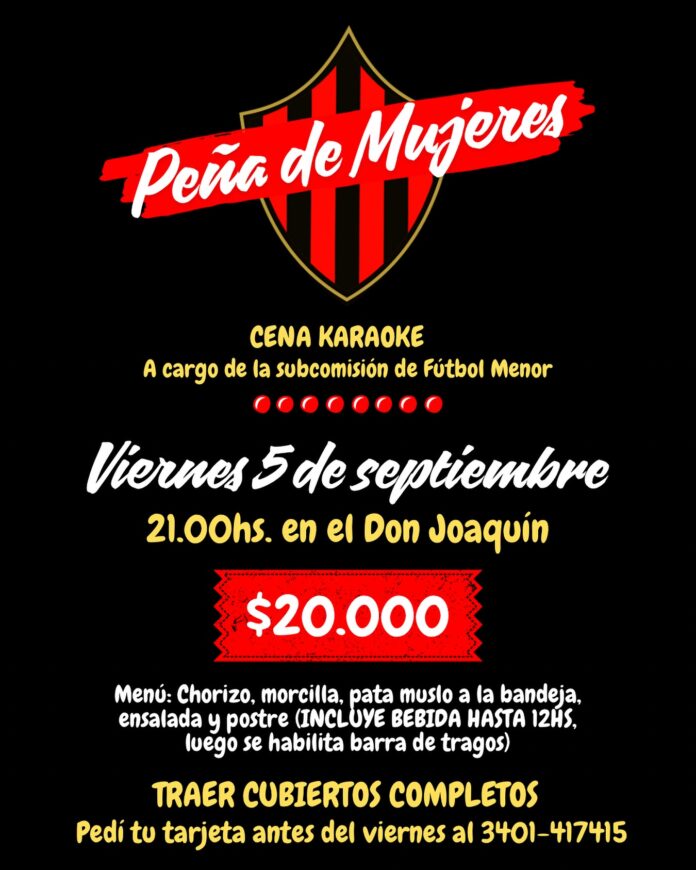 La organización busca no solo ofrecer una noche de entretenimiento con cena y karaoke, sino también recaudar fondos para seguir apoyando a las categorías infantiles del club.