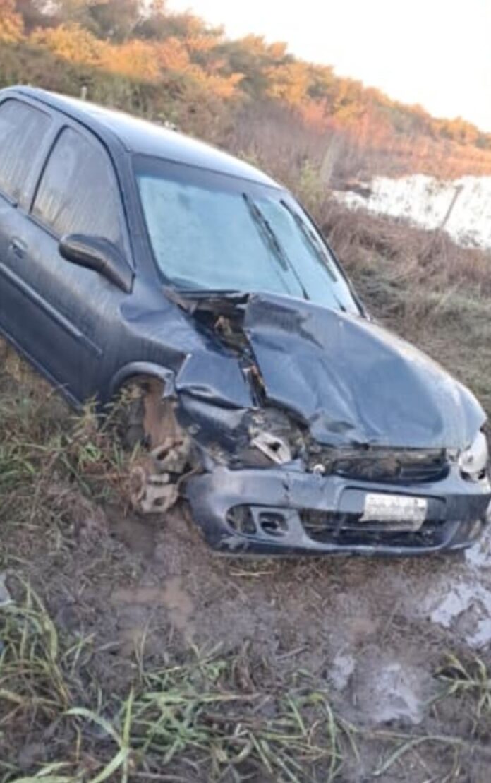 Un Chevrolet Corsa ocupado por una mujer de nuestra localidad, por causas que se tratarán de establecer, impactó desde atrás a un Ford Focus, en donde se encontraba una familia compuesta por dos adultos y un bebé, también pellegrinense y ambos terminaron volcados en la banquina bajo el agua.