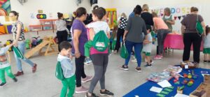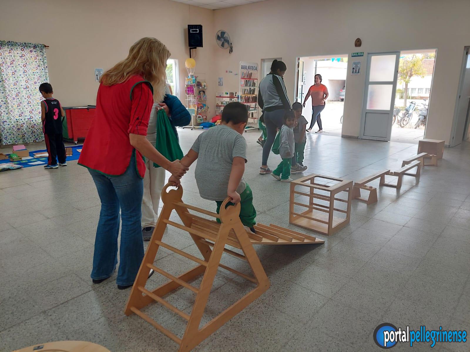 En la actividad, los niños pudieron observar y usar diversos juegos que estimulan la imaginación y coordinación, que tienen una orientación de pedagogía alternativa, con diseños originales, hechos en materiales de madera y tela.